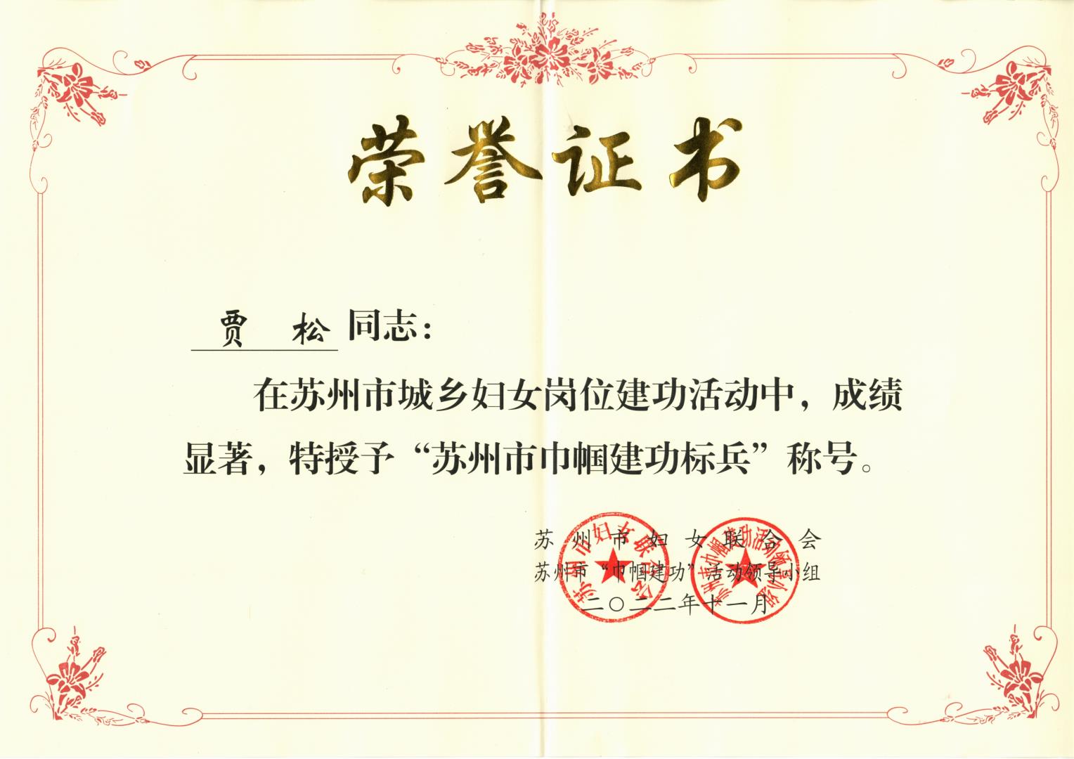 • 喜报:我院贾松同志获得“苏州市巾帼建功标兵”称号