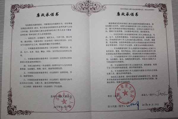 ——附属眼视光医院参加市残联廉政承诺签订暨警示教育大会 2017年4月12日,苏州市眼视光医院参加了苏州市…