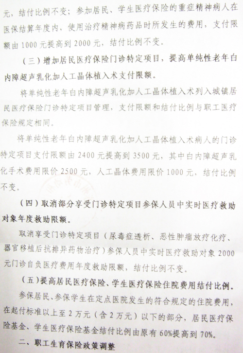 今日,苏州劳动和社会保障局下发了有关苏州市区2009年社会基本医疗保险和生育保险政策的通知,其中与我院相关的部分是提高了单纯性老年白内障超声乳化加人工晶体植入术支付限额,由原来的2400元提高到3500元,其中白内障超声乳化手术费用限价2500元,人工晶体费用限价1000元,结付比例不变。