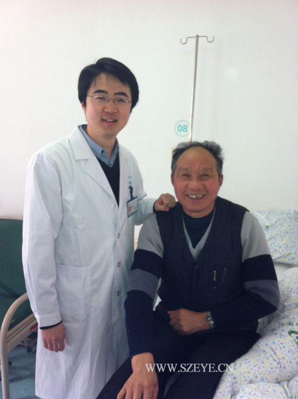 该患者名叫叶永胜,2月21日郑医生为他进行了左眼玻璃体切除+视网膜复位+视网膜激光+晶状体切除+人工晶体植入+硅油填充手术,已于日前康复出院。临行前他对郑主任技术,医德啧啧称赞,意在不虚此行。