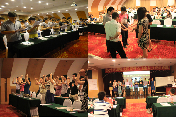 培训正式开始后,全体学员在讲师的带领下,首先进行了团队建设活动,学员们经抽签分成了四组,并确定了队名、对标和队歌,选举产生了临时班委。培训主要从沟通技巧、现代医院服务理念与优质服务、敬业精神、做一个高效的工作者四个方面,结合知识讲解、案例解读、经验分享、体验互动等方式进行。培训期间,丁强老师反馈了在医院的体验式就诊情况,对存在问题给予指正并提供合理化建议。学员们还学唱了手语版《感恩的心》,并以团队形式进行了表演比赛。通过对团队成员之间在沟通、合作、集体表演等体验环节的全程跟踪,训练班最终评选出八名优秀学员和一个最佳团队。