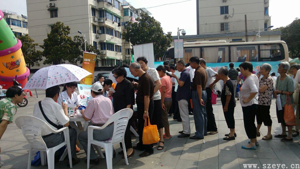 活动现场热闹非凡,前来咨询、检查的居民络绎不绝,验光的诊台前甚至排起了长队。“听说苏州的专家要来进行眼科义诊活动,我们老早就在这里等着了,秋天一来,眼睛就痒得流泪,一定要请专家帮我看看?!崩醋晕饨闪暾虻恼虐⒁趟?。