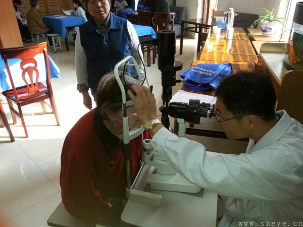 为护理院老人进行裂隙灯下检查[/align]