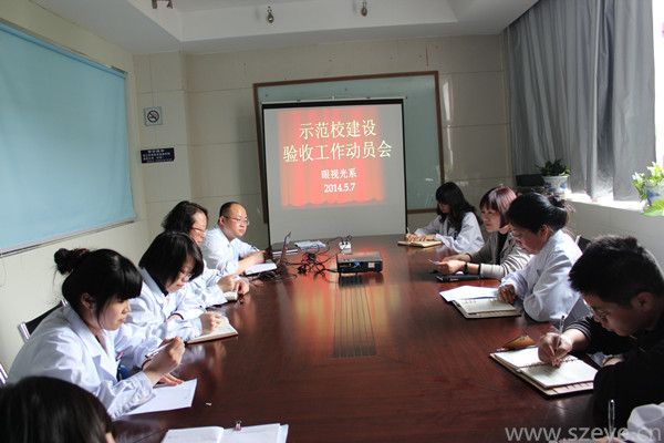 5月7日下午,眼视光系在医院二楼会议室召开了示范院建设验收工作动员会,眼视光系党总支书记丁旭红、副主任贾松、系全体教师参加了会议,会议由丁旭红书记主持。