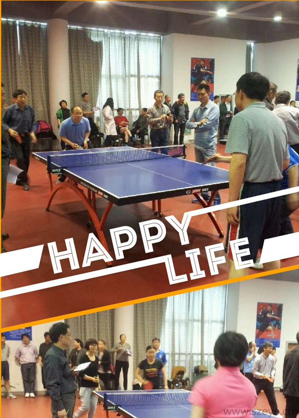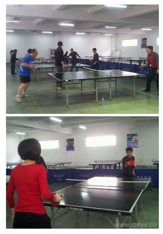 乒乓球运动老少皆宜,适合我院所有职工。从眼保健的角度来讲,在打乒乓球过程中,球在远近不断交替,可以调节眼球,对于预防近视有好处,而且可以锻炼反应能力。乒乓球的反应时间一般都少于0.5秒,是所有运动之中反应最快的运动,打乒乓球可以放松眼睛周围的肌肉,对保护眼睛和视力有着很好的帮助。