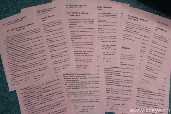 最后,沈丽君院长与丁旭红书记亲自与各科室负责人签订了《苏州卫生职业技术学院眼视光系(眼视光医院)2014年度党风廉政建设和行风建设责任书》、《苏州卫生职业技术学院眼视光系(眼视光医院)廉洁承诺书》。要求各科室要把任务落到每个岗位、每个人,努力做到“心中有目标,行动有方向,落实有措施,工作有实绩”。(院办 文/余学娟 图/李守龙)