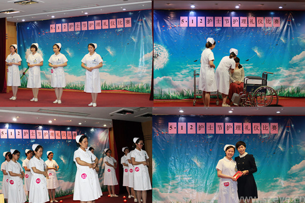 在悠扬的音乐中,参赛护士们为大家展示了站姿、坐姿、走姿、蹲姿、持物、推车等基本礼仪动作。淡淡的妆容将护士们的脸庞衬托得更加美丽,她们洋溢着的微笑,端庄得体的肢体语言,不仅充分展示了白衣天使的风采,而且给予观众美的享受。随后,白衣天使们还表演了利用业余时间自编自导自演的护理情景剧和手语歌舞,抒发了她们对护理事业的热爱和节日的喜悦之情。白衣天使们精彩的表演使活动高潮迭起,台下掌声一片,大家在轻松、愉快的气氛中度过了一个难忘的节日。