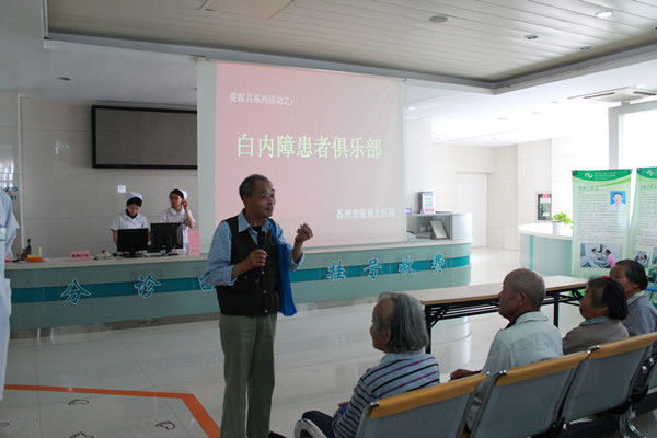 为庆祝第19个全国“爱眼日”,更好地关注广大眼科患者,积极发挥公立医院公益性,围绕“爱眼日”的活动主题,眼视光医院陆续开展了爱眼月系列公益活动。6月4日,白内障俱乐部第三次活动在医院二楼顺利开展,李国星副院长、马烈副主任及部分医护人员参加了本次活动。