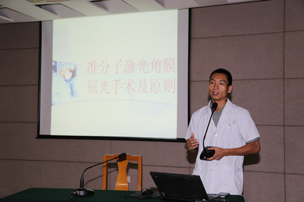 吴医生首先从大学生眼睛的日常护理引入,从屈光不正的形成过程、眼球解剖,特别是角膜解剖展开,来阐释近视手术。再从近视手术的形成历史过程深入,讲述了各种近视手术的特点,并利用视频影像形象地演示了各种手术方式及过程。他结合一些临床案例分析,使师生们能够对近视激光手术有全面的认识。讲座结束后,同学们积极踊跃地提出各种问题,与吴医生进行了互动讨论,讲座现场气氛十分热烈。同学们纷纷表示,通过此次讲座,知晓了眼科学的基础知识和近视激光手术原理,收获颇多。(院办 文/余学娟 图/邵立)