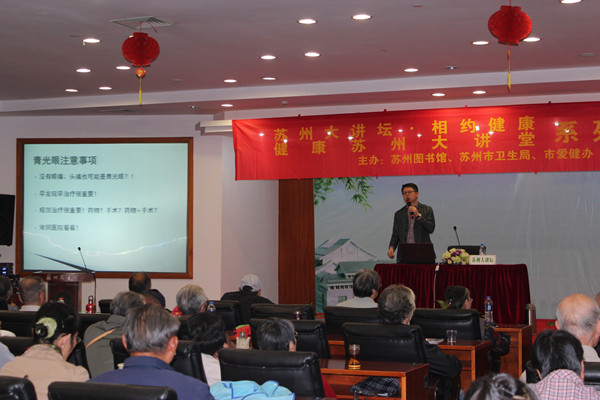 10月15日下午,苏州市眼视光医院副院长、副主任医师李国星应苏州市卫生局、市图书馆的邀请,在图书馆第一报告厅为市民做题为《常见致盲性眼病》的科普讲座。活动吸引了近150多位中老年居民前来听讲。