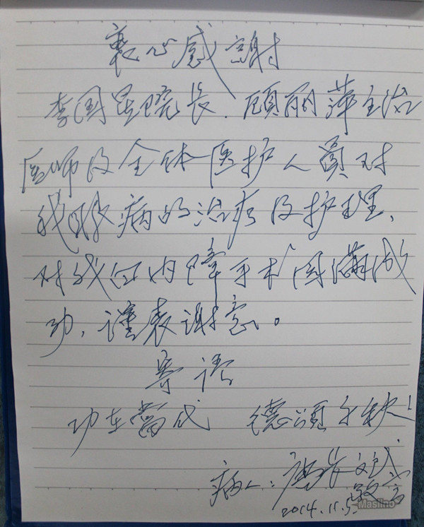 10月29日坐在诊室的唐爷爷和李院长说:“我总共来了三次,第一次来看看医院怎么样,护士们的态度好不好;第二次来看看李院长是不是真的待病人很好。来了两次,我感到护士们都很亲切,李院长对病人很关心,所以今天我又来了,是特地来找李院长的。”