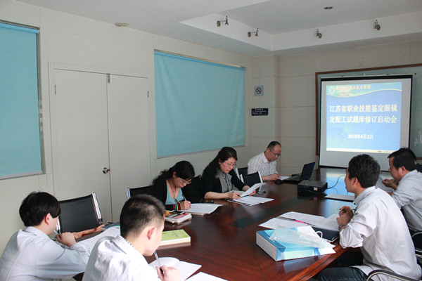 4月2日下午,江苏省职业技能鉴定眼镜定配工试题库修订启动会在苏州市眼视光医院二楼会议室召开,苏州市职业技能鉴定中心蒋建华主任、浦彬副主任、吴子杰科长及眼视光系贾松副主任、姬娜、牛燕、李代炎、范微莺老师等参加启动会议。