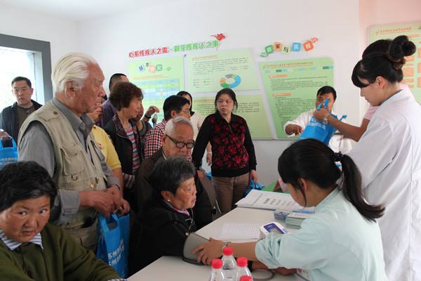 活动现场人头攒动,裂隙灯检查和量血压诊疗台前都排起了长长的队伍,“眼睛春天发炎怎么办”、“白内障需要做手术吗”残疾朋友纷纷上前来咨询。工作站的残疾人大部分是中老年人,视力不清对日常生活造成了很大的不便,更有一些残疾人患了白内障、青光眼等一些较为严重的眼部疾病。眼科医生陈凡针对残疾人的检查结果和一些常见的眼病症状,向残疾朋友做了细致的讲解,以便于他们在平时的生活中做到早发现,及时送诊。