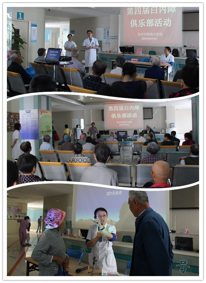 为纪念6月6日第20个全国“爱眼日”,苏州市眼视光医院于6月4日上午9:00在医院二楼大厅举办“第四届白内障患者俱乐部活动”。医院对此次活动非常重视,成立了专门的工作小组,公益医疗部为此次活动的举办提前做了周密准备,医务部、院办、信息科等部门积极配合,李国星副院长、贾松副院长及五十多位白内障患者及其家人参加了活动。活动由医务部副主任高小伟主持。
