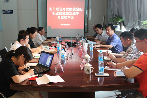 8月28日下午,省市联合开发眼镜定配职业技能鉴定题库专家初审会在眼视光医院二楼会议室召开。初审会外聘评审专家常州卫生高等职业技术学校施国荣主任、上海宝岛眼镜首席技师唐虎、上海锐眸眼镜刘亚威总经理,苏州市职业技能鉴定中心蒋建华主任、浦彬副主任、吴子杰科长和题库开发组全体成员参加会议。