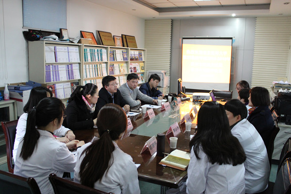 丁旭红书记首先对南医大检查组的到来表示了热烈的欢迎,并介绍了到场人员。邵海亚院长代表南医大向在场的老师和学生介绍了此次实习检查的流程、目的,并对医院给予实习生的实习支持与培养表示了感谢。高小伟副主任向各位检查组成员汇报了实习教学管理情况,肯定了南医大实习生们能积极主动的发现问题、解决问题,有着良好的素养,能按时完成带教老师交给的实习任务。