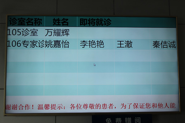 医院在启用门诊就诊排队叫号系统后,还即将陆续投入使用电子病历系统、电子医嘱系统和电子护理记录系统,这些都是医院为了优化就诊流程、加强门诊医患沟通、提高医疗质量管理、推进医院信息化建设、促进医患和谐,持续改善服务质量所采取的措施。(撰稿:汤晓明 审稿:黄小琼 摄影:汤晓明)