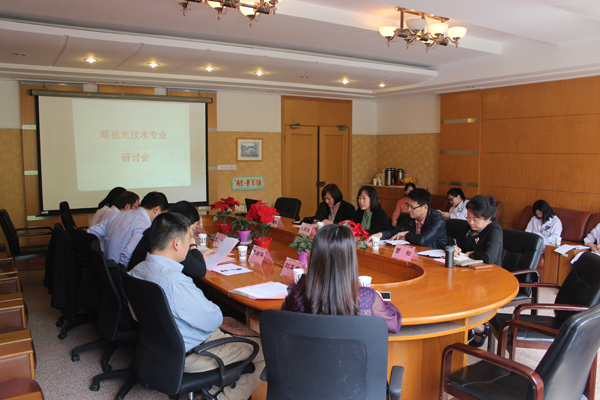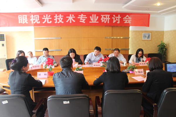 为进一步创新眼视光技术专业人才培养机制,提高专业人才培养质量,推动专业建设发展,2017年4月19日,眼视光系在书院校区办公室二楼会议室召开了眼视光技术专业研讨会。本次研讨会邀请了南京医科大学附属眼科医院副院长薛劲松、金陵科技学院视光工程系系主任李新华、江苏省眼镜协会副会长徐显固等行业专家和兄弟院校。学院吴丽荣副院长、教务处於学良处长、眼视光系党总支书记丁旭红、系副主任贾松及系全体教师参加了研讨会?;嵋橛啥⌒窈焓榧侵鞒帧?br>