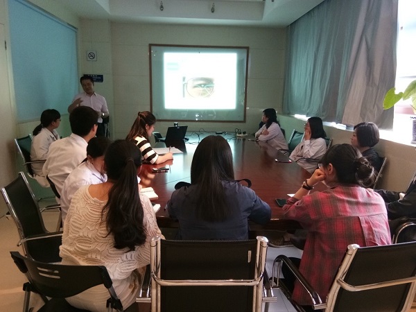 为了不断提高附属眼视光医院视光部全体人员验配渐进片的专业技能,更好地满足患者对渐进片的特殊需求,2017年5月15日在医院二楼会议室,医院特邀请上海依视路光学有限公司培训师余纲老师来院对视光部员工进行专业培训。视光部部分工作人员参加了培训会。