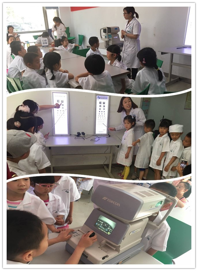 为了让小朋友们更好的体验和了解到眼科医生的工作内容,医院医务人员为小朋友们穿上了白大褂,并为小朋友和家长们普及了眼科的基础知识以及活动的相关注意事项,教小朋友们检查视力、验光的方法。通过讲授基础知识、现场演示和随机提问等方式,让小朋友们可以更深入的体验和了解到医生和验光师等职业的特殊性。