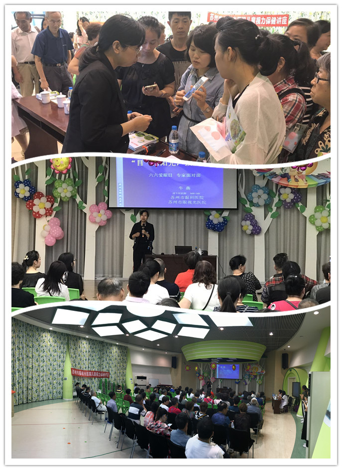 6月6日下午,苏州市眼视光医院视光门诊牛燕主任走进南环幼儿园开展“‘目’浴阳光,预防近视”——六六爱眼日,专家面对面专题讲座活动。讲座中牛主任跟家长一起分享了小朋友视力发育特点,学龄前儿童的常见视觉问题(斜弱视知识,屈光不正概念)以及近视预防防控。而且牛主任提出了近视预防的三要素:每天2小时户外活动,合适的用眼状态,减少近距离用眼,建立屈光发育档案。活动现场,家长认真记录,讲座后咨询会现场氛围热烈,还有很多爷爷奶奶带着小宝大宝到现场请专家会诊。