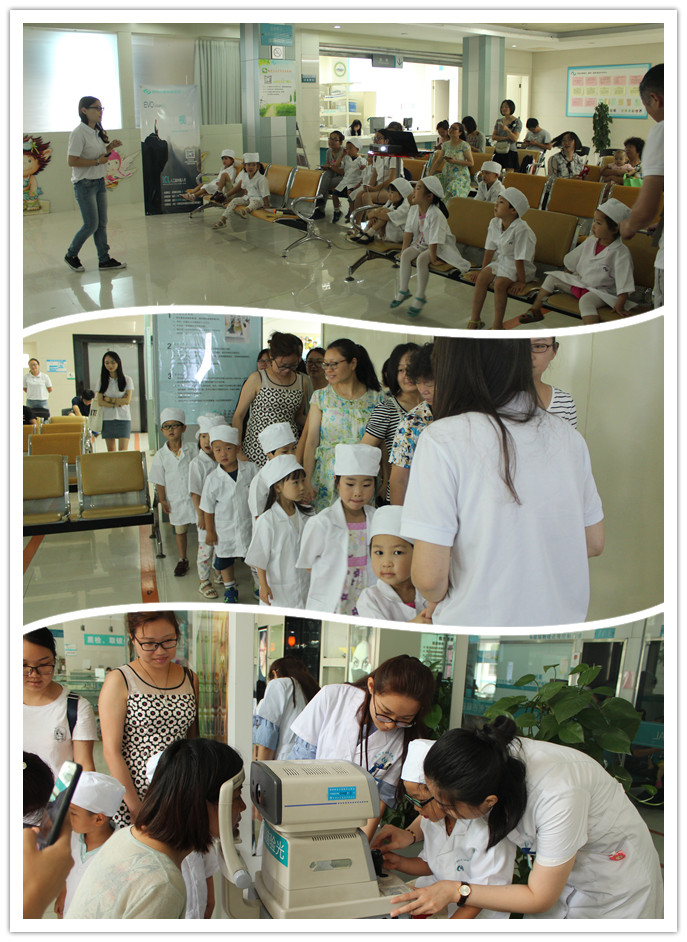 在医生的带领下,小朋友们先换上了小小的白大褂,戴上了小帽子,变身成为“小小眼科医生”。“小医生”先了解与眼保健相关的生活常识,学习视力表的使用,并在视光部医生的指导下,完成了对家长们的视力检查和电脑验光检查。医生为小朋友们提供了可以体验近视状态的试戴镜,让小朋友们更直接更清晰的了解近视状态,为防治近视、保护视力做好更深入的宣传。