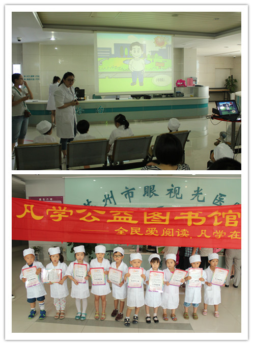 7月8日上午,苏州市眼视光医院联合凡学公益图书,邀请苏州大学幼儿园、新洲幼儿园、迪诺幼儿园的小朋友来我院参加“小小眼科医生”体验活动。小朋友们通过视力检查、电脑验光以及体验近视眼的模糊状态,来了解眼睛方面的生活常识以及如何更好的保护视力、防治近视。