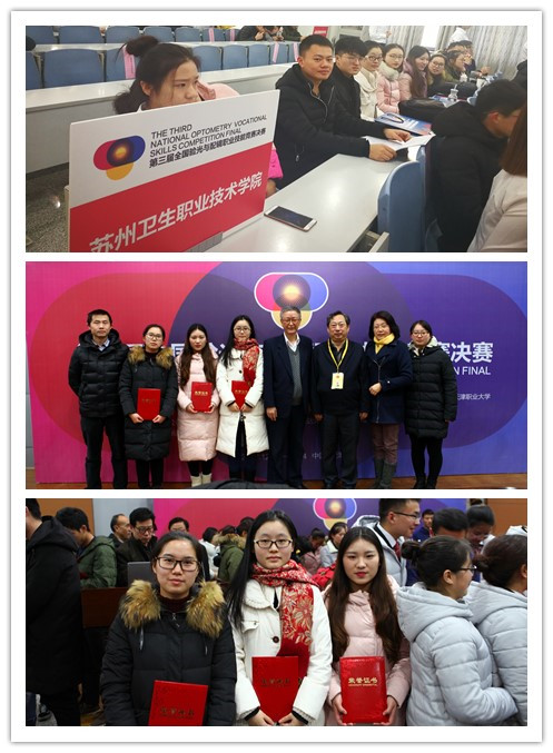2017年12月12日到14日,第三届全国验光与配镜职业技能竞赛在天津职业大学隆重举行。我校眼视光系六名同学参加了此次竞赛,其中验光组翁晓露同学荣获二等奖,梁梦雨同学荣获三等奖,定配组杭晨同学荣获三等奖。