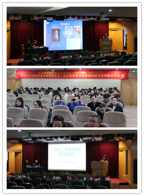 2018年1月6日在学院书院校区第一报告厅召开了苏州市中西医结合眼科年会暨高透氧硬性角膜接触镜在眼科临床的应用学术会议。本次会议由苏州市医学会中西医结合学会眼科分会主办、苏州市眼视光医院承办。来自省内外眼科领域的专家学者约70人齐聚一堂,共同交流眼科专业的诊疗及发展。