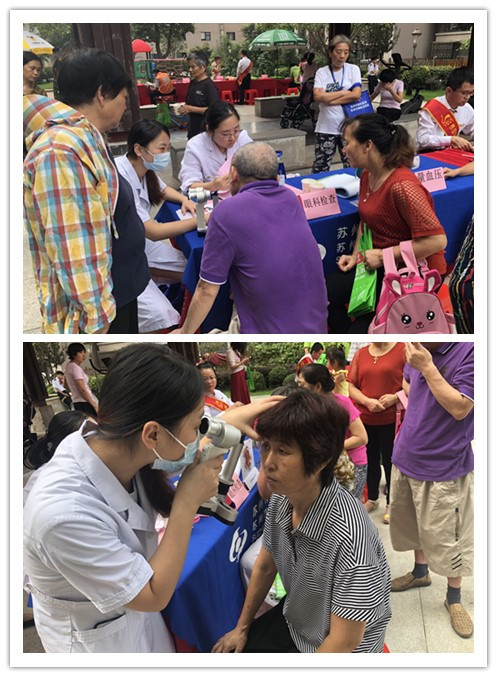 苏州市眼视光医院的爱心医疗团队在中秋佳节来临之际为社区的居民们提供了免费的眼科健康检查和咨询服务,为大家测视力、做检查、解答大家关于眼部疾病的问题。爱心医疗团队还为有需要的居民测量血压,提醒血压异常的居民朋友注意饮食和休息。