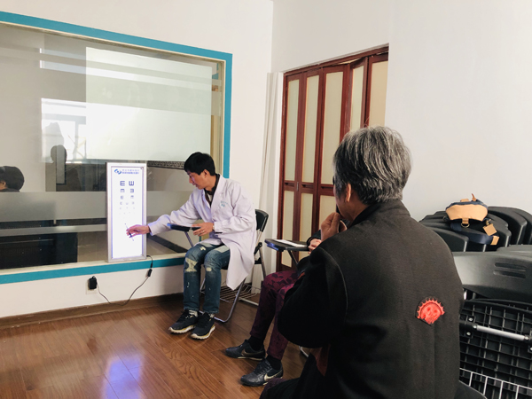 活动现场,医疗团队为老人们建立眼科健康档案,进行视力检查,顾丽萍医生使用手持式裂隙灯和便携式眼底照相机为老人们进行眼部健康检查,并解答老人们关于眼部疾病的疑问。经过活动现场初步筛查,很多老人患有高血压或糖尿病。