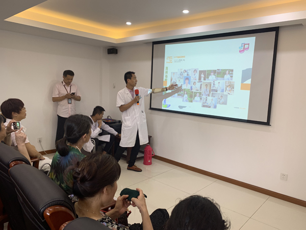 活动现场,吴主任为社区居民进行眼病基本科普讲座,在讲座中现场居民不时的进行提问,吴主任耐心的为他们讲解,讲座现场气氛十分活跃。讲座结束后大家依次排队登记,医疗团队为居民们进行了免费的眼科检查,包括视力检查、裂隙灯检查、眼底检查等。在为每一位居民们进行检查后,吴主任都与他们进行细致的沟通、耐心地讲解,并提出针对性的医疗指导意见和建议。对于眼睛异常并且需要接受治疗的老人们,则会建议他们到医院做进一步检查。检查结束后医疗团队还为老年居民们提供了眼科健康知识宣传册、卡通视力表等小礼品。