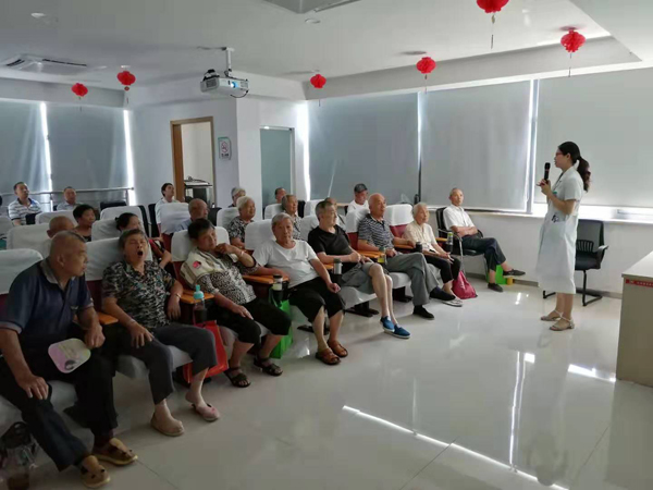 虽然天气炎热,但参加活动的居民还不少,社区会议厅里已坐满社区居民。他们相互相交流着各自的眼部状况,活动还未开始就已经讨论得热火朝天。在居民的期待中讲座终于开始,针对老年人常见眼病,傅院长进行讲解,她通过几张眼部结构图及眼底图介绍了眼睛的构成,让大家对自己的眼睛有个初步的了解。随后傅院长介绍了老年人常见的几种疾病的发生发展以及预防与治疗,主要包括老视、白内障、飞蚊症、青光眼等常见疾病。详细讲述了老视是一种年龄性的自然改变,随着年龄增长眼睛的调节能力下降导致看近物困难或视近容易疲劳等症状,只能通过戴镜进行改善。还详细介绍了白内障,白内障是年龄性的晶状体混浊,是一种衰老,白内障的主要临床表现是视力下降、屈光改变、眩光等,并介绍了白内障手术及其必要性,对于白内障药物治疗作用并不大,手术治疗才是有效手段。傅院长用生动的比喻,形象地讲解了各种眼科疾病,让社区居民们易于理解,记忆深刻,起到了很好的科普作用。