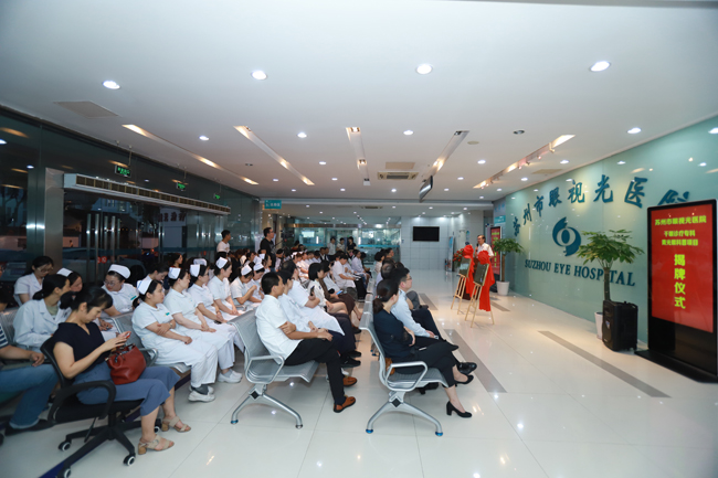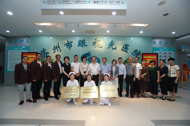 2019年9月3日,苏州市眼视光医院举行“干眼诊疗专科”、“青光眼俱乐部”和“青光眼科普基地”揭牌仪式。出席本次揭牌仪式的领导有:温州医科大学附属眼视光医院瞿佳院长、苏州卫生职业技术学院吕俊峰院长、温州医科大学附属眼视光医院陈燕燕书记、陈浩副院长、温州医科大学附属眼视光医院之江院区王勤美院长、温州医科大学附属眼视光医院拓展合作处叶恬恬处长、计财处徐歌笛处长以及中国狮子联会江苏代表处园林服务队徐勇队长等。