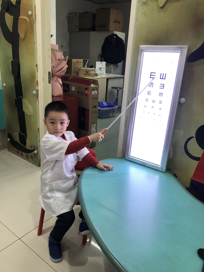 体验活动分为五个部分。首先由医护人员带领孩子和家长参观医院的工作环境,介绍了医院的就诊流程和眼镜加工流程,让孩子和家长对视光检查有了更全面的了解。第二个环节是cosplay小医生环节,我们安排小朋友和家长进行亲密互动,在工作人员的指导下,小朋友们cosplay成小医生,为爸爸妈妈测视力、做验光检查,试用各种检查设备,忙得不亦乐乎。此环节帮助孩子们认识到眼健康的重要性,孩子们在活动中积极性很高,现场气氛十分活跃。随后,医院的视光医生给孩子和家长带来了一堂生动的爱眼护眼讲座。医生提醒孩子们,在户外的阳光下玩耍比盯着手机玩游戏要健康得多,每天两小时的户外活动能够有效预防近视,小朋友们要听医生的话,多进行户外活动,少使用电子产品?;疃詈?,工作人员为参加本次活动的小医生们颁发了“我是小小眼科医生”荣誉证书,希望他们?;ず米约貉劬Φ耐?,也可以把爱眼护眼的小知识传递给身边的其他小朋友!最后我们邀请所有的小朋友、家长和老师在医护人员的陪同下进行合影,让我们一起铭记这一刻,一起努力,共同做好孩子们的眼保健工作!