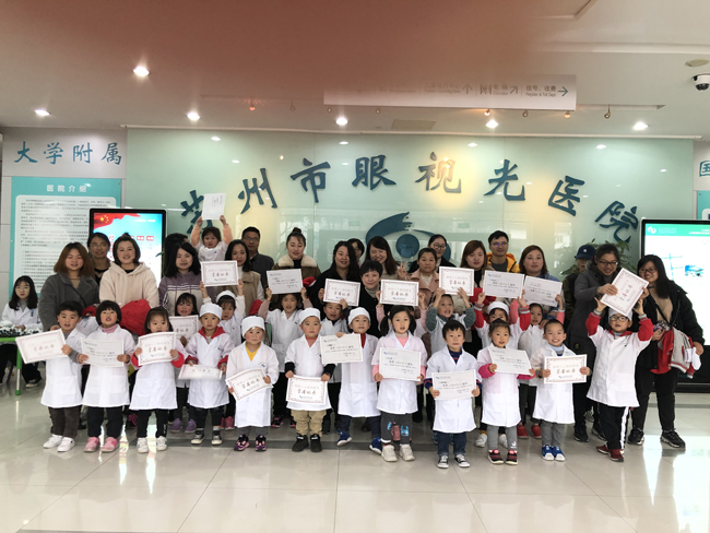 11月30日,苏州市新沧幼儿园的40名幼儿在父母和老师的带领下来到了苏州市眼视光医院参加“我是小小眼科医生”体验活动,活动中小朋友和家长不仅学习到了实用的爱眼护眼小知识,还美美的过了一把“小医生”的瘾。