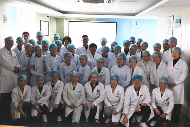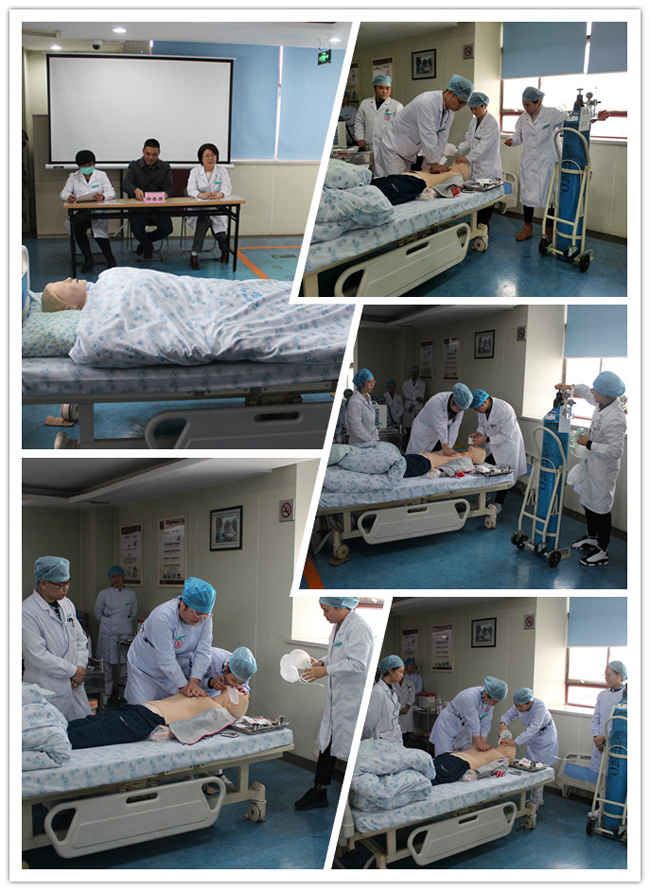 本次比赛由眼病、视光、护理、行政四个部门参加,共组成三个团队,分别是视光“众志成城”队,眼病加护理“所向披靡”队,行政“团结奋进”队,这三个团队又组成了10只队伍,每组四人。操作演练主要模拟对心脏骤停患者的急救工作,大家首先对病人采取心肺复苏和简易呼吸气囊辅助呼吸,在病人发生室颤时进行除颤。各组队伍默契配合,在急救的短短几分钟内,将急救工作展示的淋漓尽致,并赢得了大家的阵阵掌声。