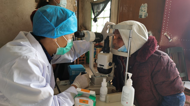 义诊现场,老人们在社区工作者的指引下有序排队,依次进行视力检查、裂隙灯检查及眼底检查,在筛查过程中发现有一半的老人存在白内障的情况,其中严重的已经不可视物,急需手术治疗,吴主任在帮老人们检查眼睛的同时,也针对性地为老人家提出了治疗建议。