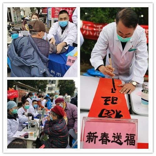 活动现场,前来问诊、咨询的居民络绎不绝,党员们各展所长,发挥优势:医护人员为居民进行裂隙灯检查、血压测量;药剂师为居民进行用药咨询;时值春节前夕,党员在现场、为居民写春联送祝福,还有党员为居民讲解眼科知识保健常识并赠送宣传材料,活动现场热闹非凡。