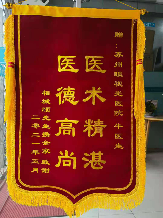 党史学习教育开展以来,眼视光系(眼视光医院)党总支认真学习贯彻习近平总书记在党史学习教育动员大会上的重要讲话精神,着力在“学党史、办实事”方面下功夫,立足走深、走心、走实、走新,掀起了一轮办实事的热潮。5月7日,苏州市眼视光医院发生了一件温暖人心的事。患者家属顾先生给医院邮寄了一面锦旗,上面写着“医术精湛、医德高尚”八个大字,衷心感谢医院视光部牛燕主任在患者无助之时提供的无私帮助。