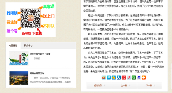 朱先生于日前登上了手术台,李院长亲自操刀。手术十分顺利。下了手术台,朱先生表示:刚上手术台还是很“紧张的,没想到手术过程中一点也不疼,术后的视力恢复很好,比那时在美国做手术更舒适,感觉好极了?!币皆菏鹾蟾床椋笱凼恿τ稍吹闹甘矍耙丫指吹?.6,走路,看书一点问题也没有。朱先生特别激动,自己的左眼终于在“家”又重见光明了。