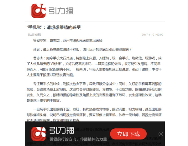 读者:最近我总感觉眼睛不舒服,请问玩手机到底会引起哪些眼病?