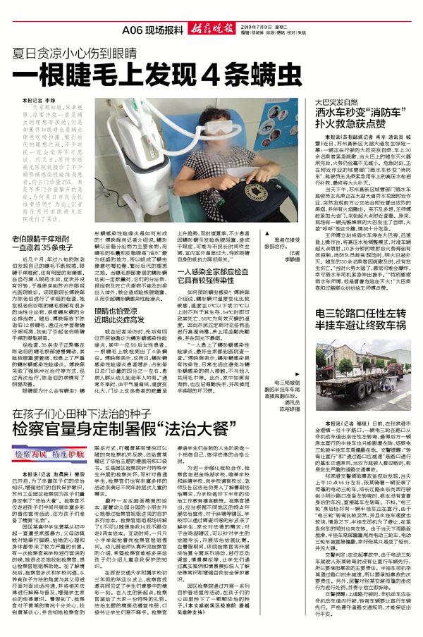 大家都知道,床单被罩、凉席沙发一直是螨虫的理想寄居地,但是如果得知眼睛也是螨虫肆意吃喝拉撒、繁衍后代的理想之地,不少市民一定会觉得不可思议。近几日,苏州市眼视光医院就接诊了不少蠕形螨感染性睑缘炎患者,约占门诊量25%。本是冬季门诊量攀升的炎症,为何夏日市民会扎堆中招呢?为此,记者前往苏州市眼视光医院进行了采访。