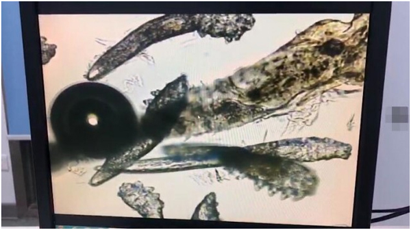 今天,记者茜茜也来到医院接受了检查,医生将记者的睫毛放入显微镜下观察,结果发现尽管平时十分注意卫生,睫毛下竟也存在不少蠕形螨在蠕动,简直把记者吓坏了!所以,如果出现了眼痒、眼红、异物感、眼干、分泌物增多、睫毛根部丘状结痂或套袖样结痂、反复睫毛脱落、倒睫、睫毛鳞屑增多等症状时,请立即到眼科医院就诊哦!