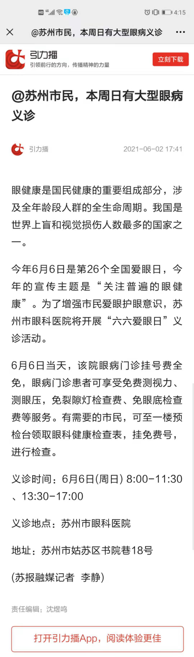 @苏州市民,本周日有大型眼病义诊