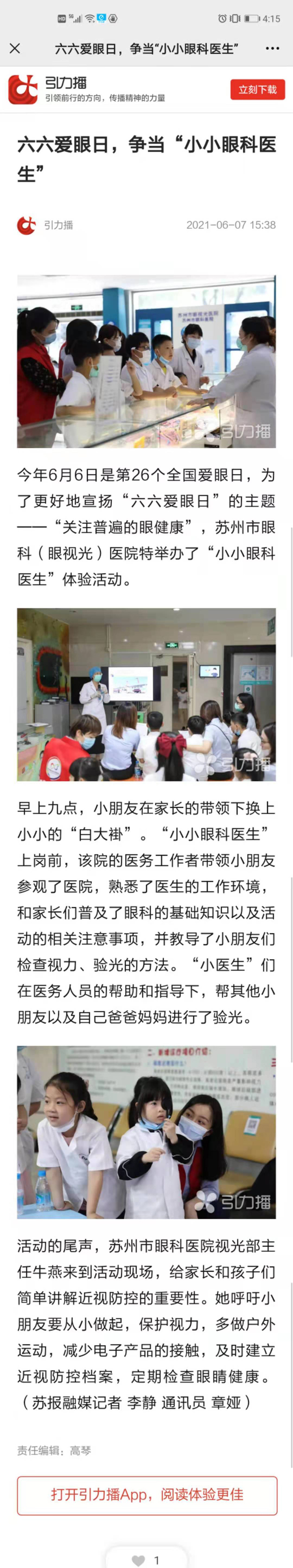 六六爱眼日,争当“小小眼科医生”