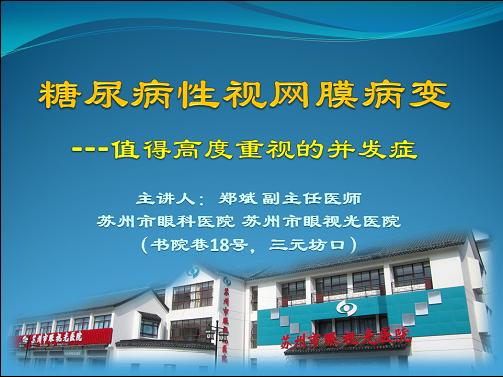 各位患者朋友大家好,我是苏州市眼视光医院眼底病专科主任郑斌,非常感谢大家关注微信“苏州市眼底病诊疗平台”,我们会在这个平台上为广大患者提供详尽的糖尿病眼底疾病的科普知识,希望大家喜欢,也欢迎您推荐给身边有需要的朋友。谢谢!
