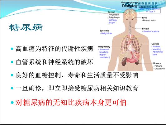 其实糖尿病本身并不可怕,因为通过良好的血糖控制,患者的生活质量和寿命并不会受到任何影响。因此,一旦确诊糖尿病应立即接受相关知识的教育,做到理解疾病,配合治疗,懂得预防,才能防患于未然。因无知而造成的恐惧比疾病本身更可怕。作为眼底病的专科医生,我强烈建议,如果您确诊糖尿病,应该立即检查眼底,并尽可能地接受相关知识教育,防止发生更加严重的问题。如果不管不顾,只会使自己面临更大的失明可能性。