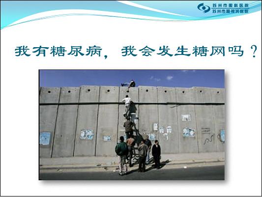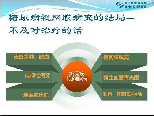 首先,我介绍一下我们的眼睛。我们的眼睛就像一个照相机,前面的晶状体就像是镜头,可以更换。我们听说过的白内障手术,就是一种更换镜头的手术,并且根据你的经济实力可以选择不同档次的人工晶状体,得到更好的视觉效果。但是我们的视网膜就像照相机的底片,如果坏掉了就是有再多的钱也是不能恢复的,所以保护好它对每一个人都是非常非常重要的。而糖尿病常常会严重危害到视网膜,使它发生各种严重的疾病,轻者视力下降,重者致盲,并且是不可逆的。