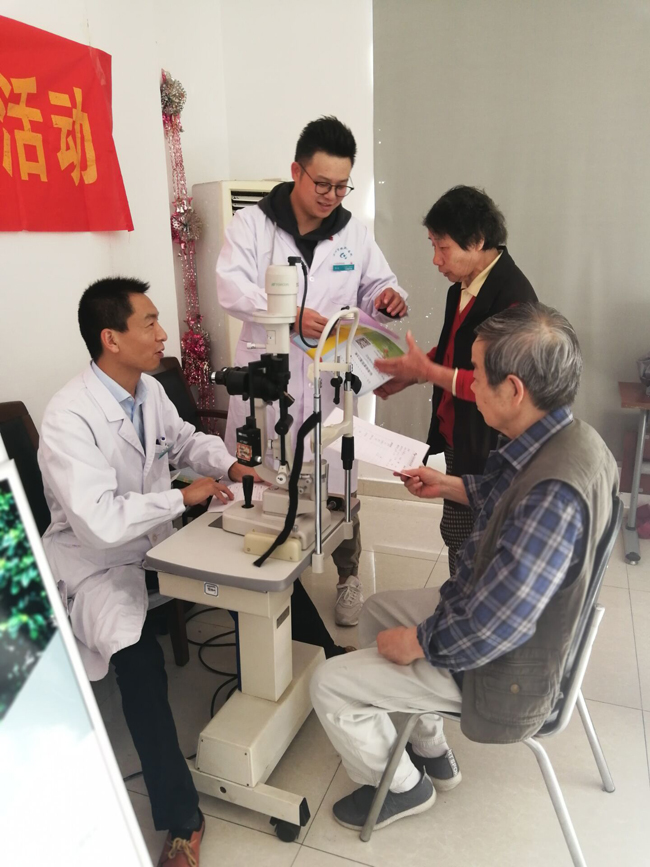讲座结束后,医务人员为老人们开展眼科专业检查,包括测视力、裂隙灯检查等。活动现场,党员们分工明确,有的为老人们登记信息、有的测视力、有的发放宣传资料、有的耐心宣教维持秩序。有的老人不会认视力表,党员就耐心的在旁边教,整个活动场面爱意融融。检查中发现,有些老人视力较差,白内障较为严重,但存在观念上的误区,认为做手术会让眼睛瞎掉,医务人员就耐心宣教,打消他们内心顾虑,并告知他们尽快手术,做到早发现早治疗,为晚年的幸福生活提供良好的视力保障。